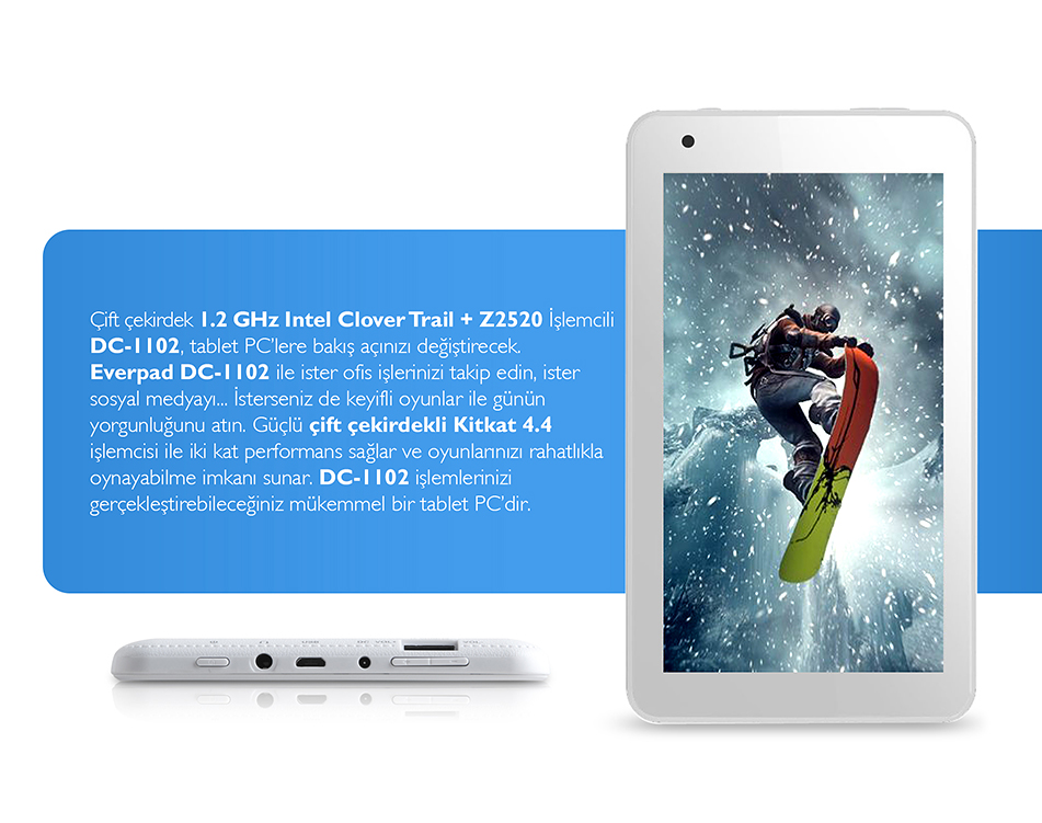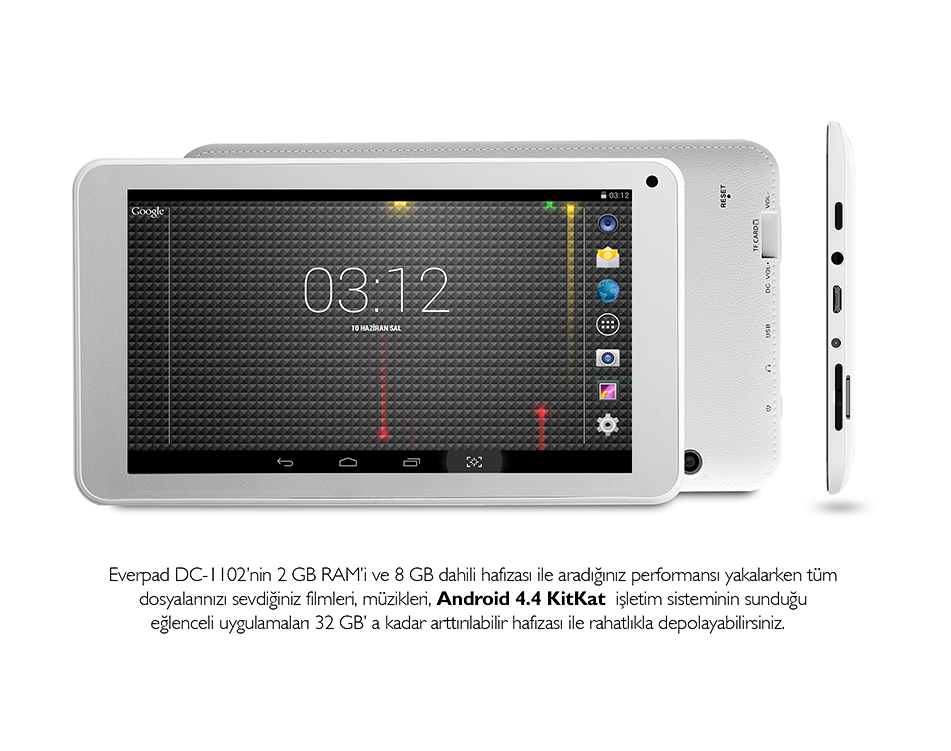 Everest EVERPAD DC-1028 10.1 1GB DDR3 1.2GHz x4 8GB Çift Kamera Android 4.20 JellyB. Tablet Pc