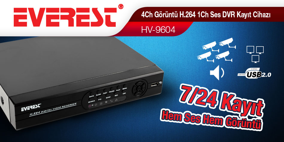 Everest HV-9604 4Ch Görüntü H.264 1Ch Ses DVR Kayıt Cihazı