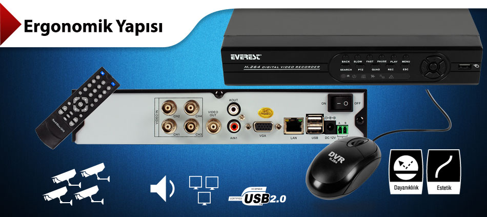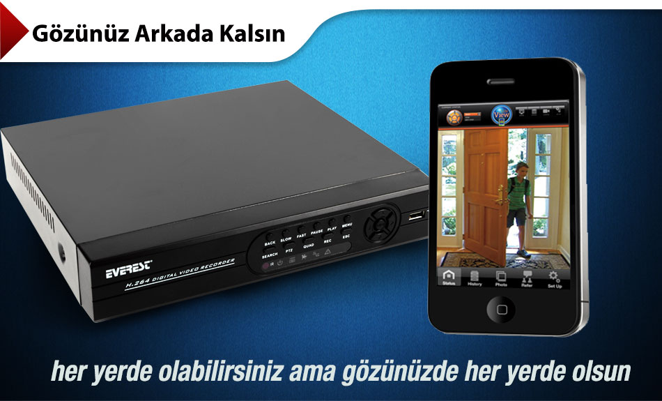 | Everest 4Ch Görüntü H.264 1 Ch Ses DVR Kayıt Cihazı HV-9604; Bu teknolojik cihazla telefonunuzdan evinizi iş yerinizi görebilir takip edebilrsiniz. |