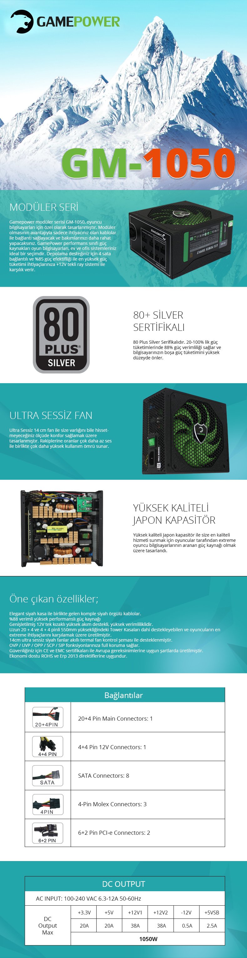 Gamepower GM-1050 1050W Power Supply (APFC 14cm 80+, Silver)