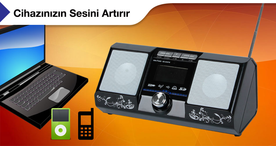 | MIKADO MD-805 FM'yi laptop, ipod, ve cep telefonunuza bağlayabilir müziğinizin sesini arttırabilirsiniz. |
