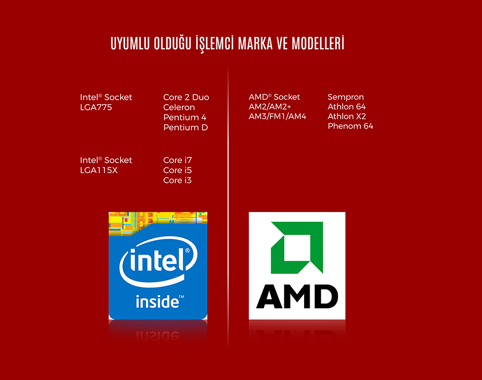 | Uyumlu Soketler | : | AM4, 1155p, 1150p, 775p |