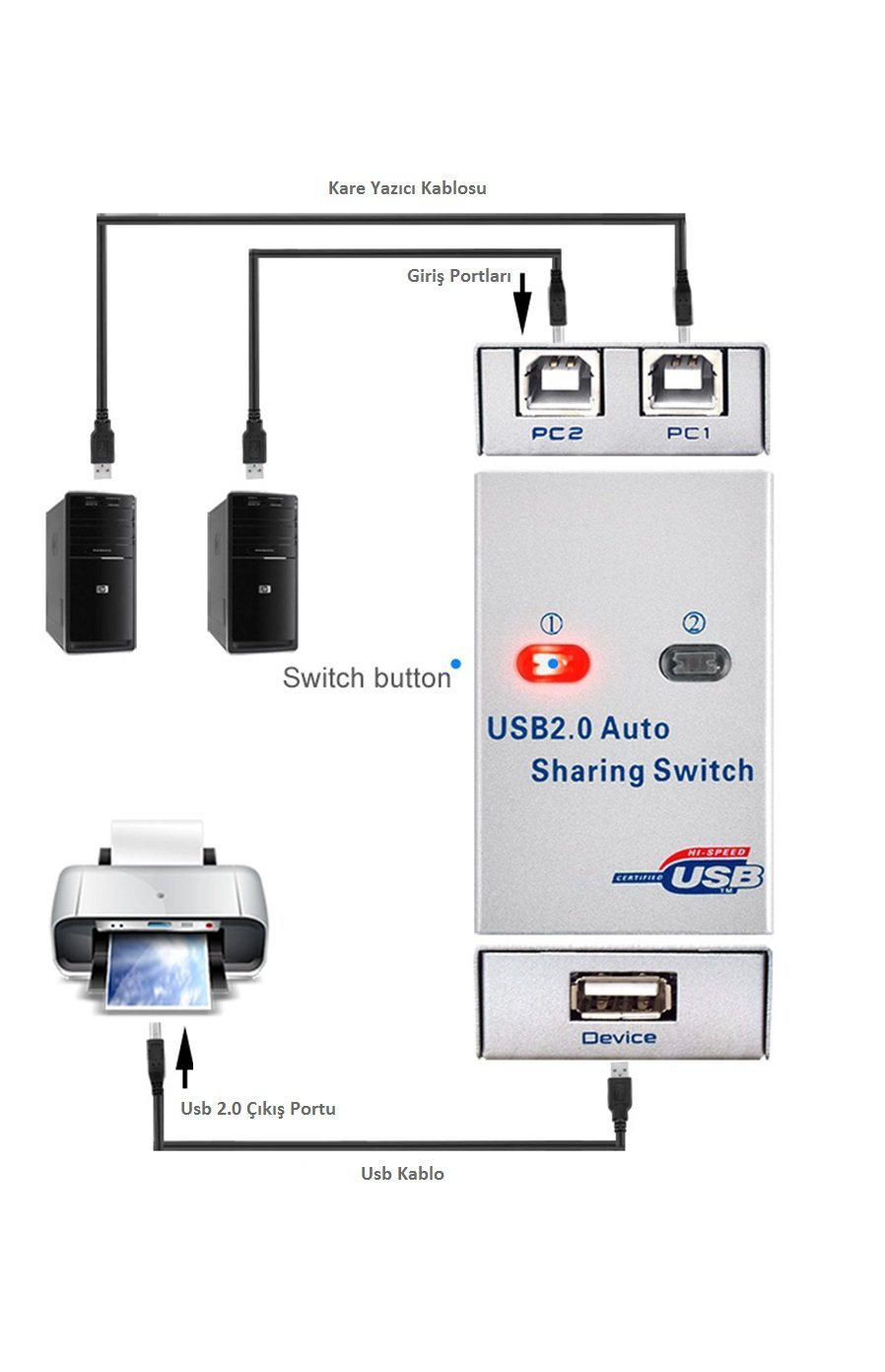 S-Link SL-USW2 Otomatik 2 Port Usb 2.0 Switch...Ofis ve Ev Uygulamaları İçin İdeal Kompakt Tasarım Switch İle Yazıcı Tarayıcı Harici Hdd Card Okuyucu Flash Bellek Gibi Usb Girişli Aygıtlarınızı 2 Adet Pc' den Kolayca Yönetebilirsiniz.
