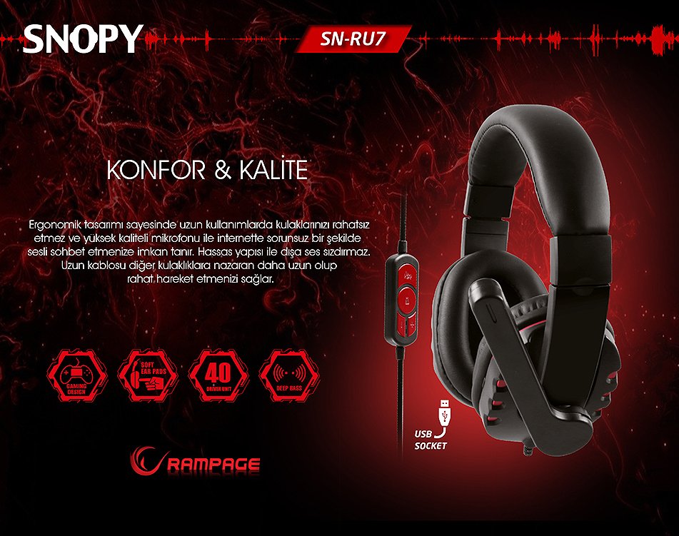 Snopy Rampage SN-RU7 Mikrofonlu Oyuncu Kulaklık (Siyah)