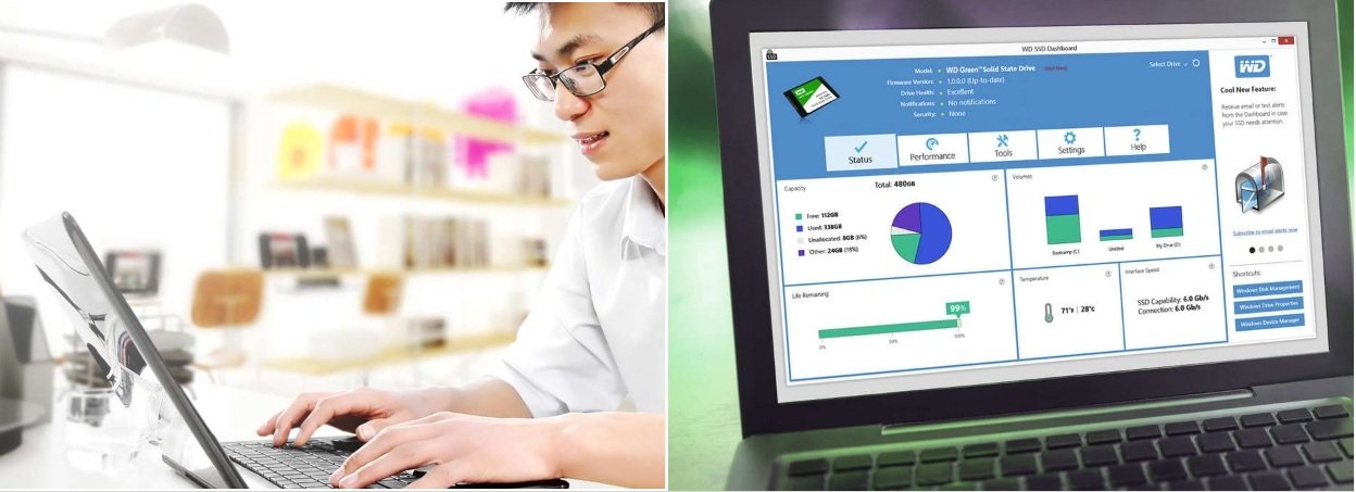 Sürücünün sağlığını ücretsiz, indirilebilir WD SSD Dashboard ve Acronis True Image ™ WD Edition yazılımı ile klon sürücülerle izleyin.